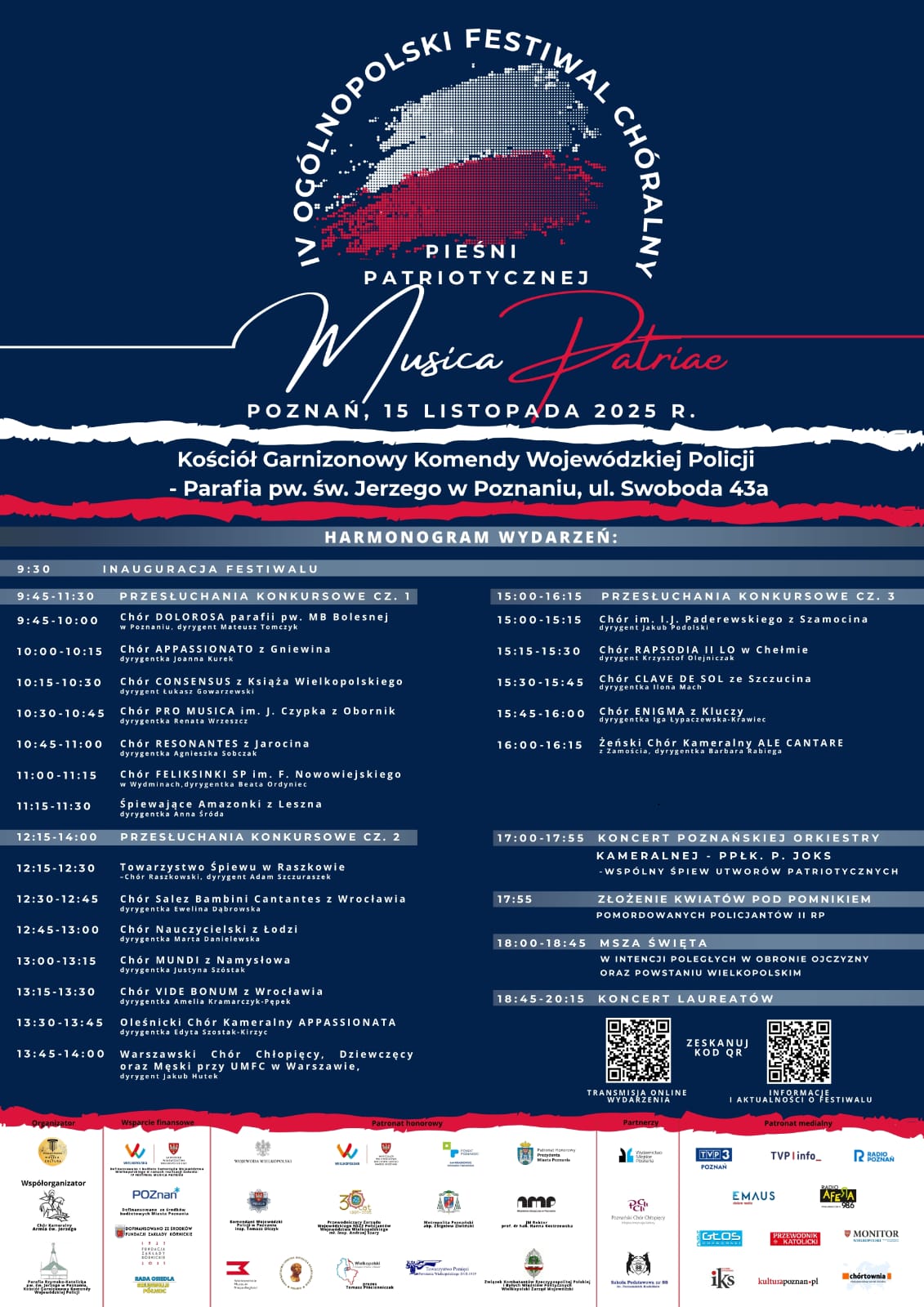 Muzyka, historia i patriotyzm w sercu Wielkopolski. 15 listopada Poznań stanie się miejscem wyjątkowego muzycznego święta, a to wszystko za sprawą IV Ogólnopolskiego Festiwalu Chóralnego Pieśni Patriotycznej MUSICA PATRIAE. To wydarzenie, które łączy sztukę chóralną z pamięcią o historii i tradycjach naszego regionu. Wydarzenie odbędzie się w Kościele Garnizonowym Komendy Wojewódzkiej Policji pw. św. Jerzego … [Read more…]