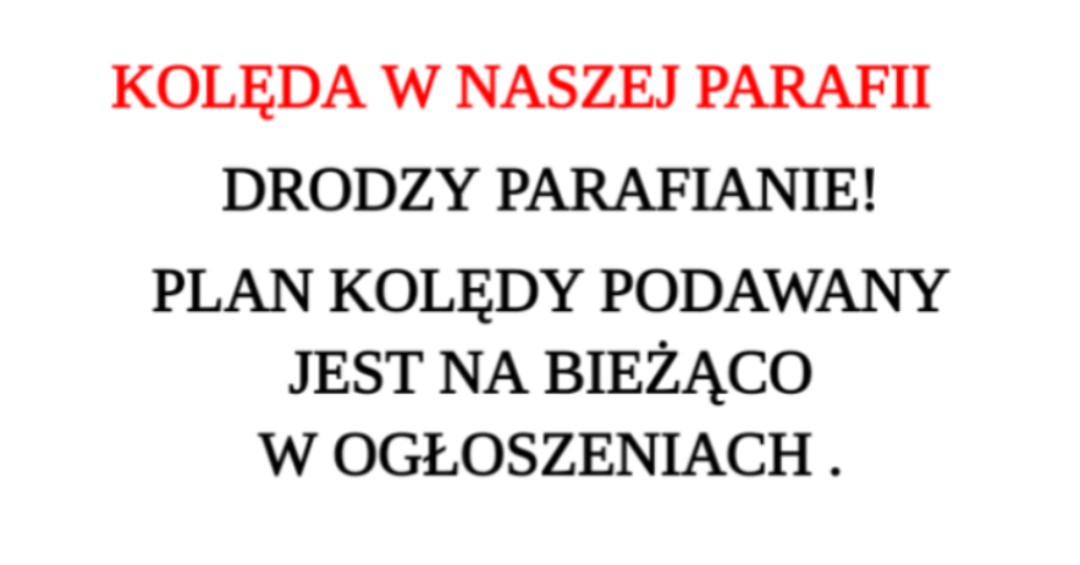 W sobotę – 27 grudnia rozpoczynamy kolędę. Kochani Parafianie, przez cały rok przychodzicie do naszego kościoła modlić się, uczestniczyć w Eucharystii, spotykać Pana Jezusa. Raz w roku nasi Kapłani chcą przyjść do Was z Bożym Błogosławieństwem, z darem modlitwy. Tak jak powiedział Ksiądz Proboszcz podczas homilii w drugi dzień Świąt – chcą być Misjonarzami i … [Read more…]