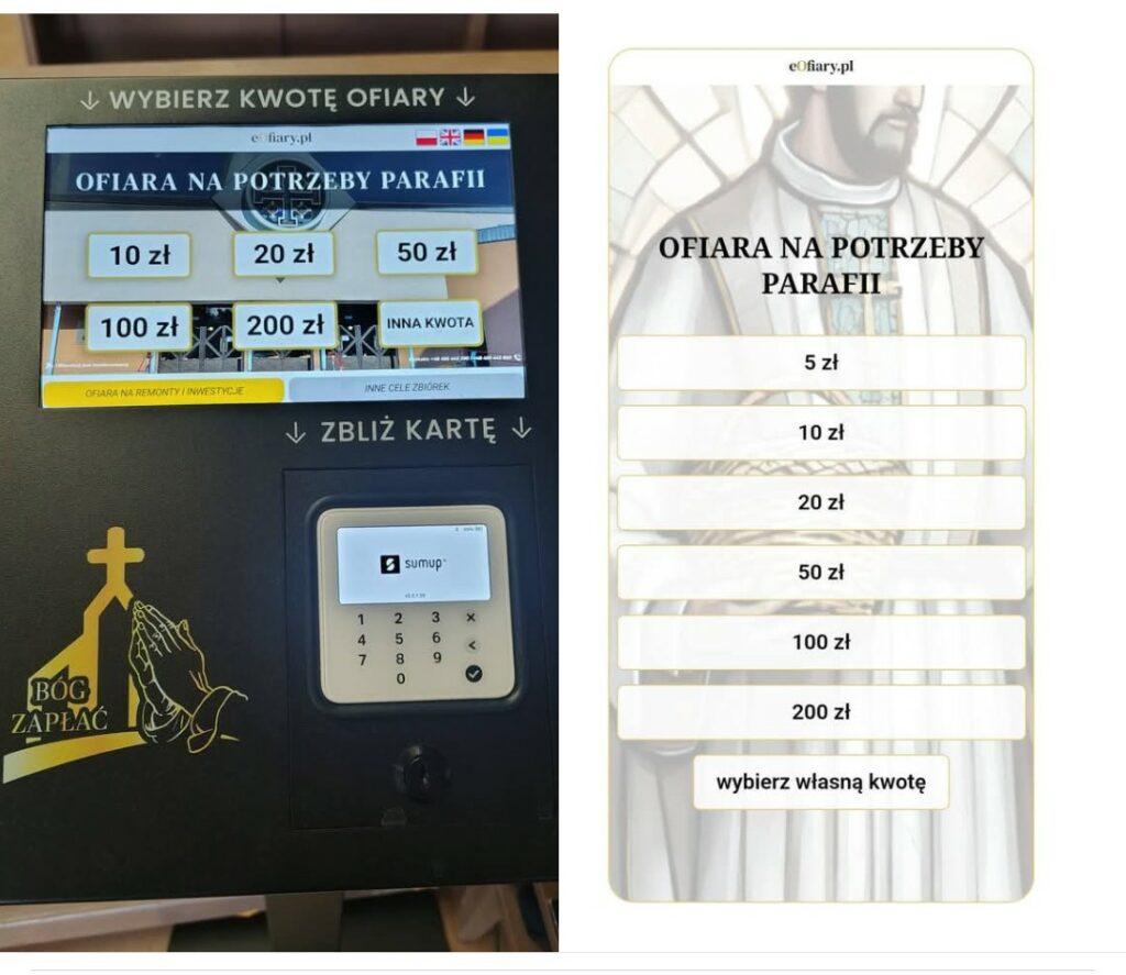 • poprzez ustawiony w kościele ofiaromat,