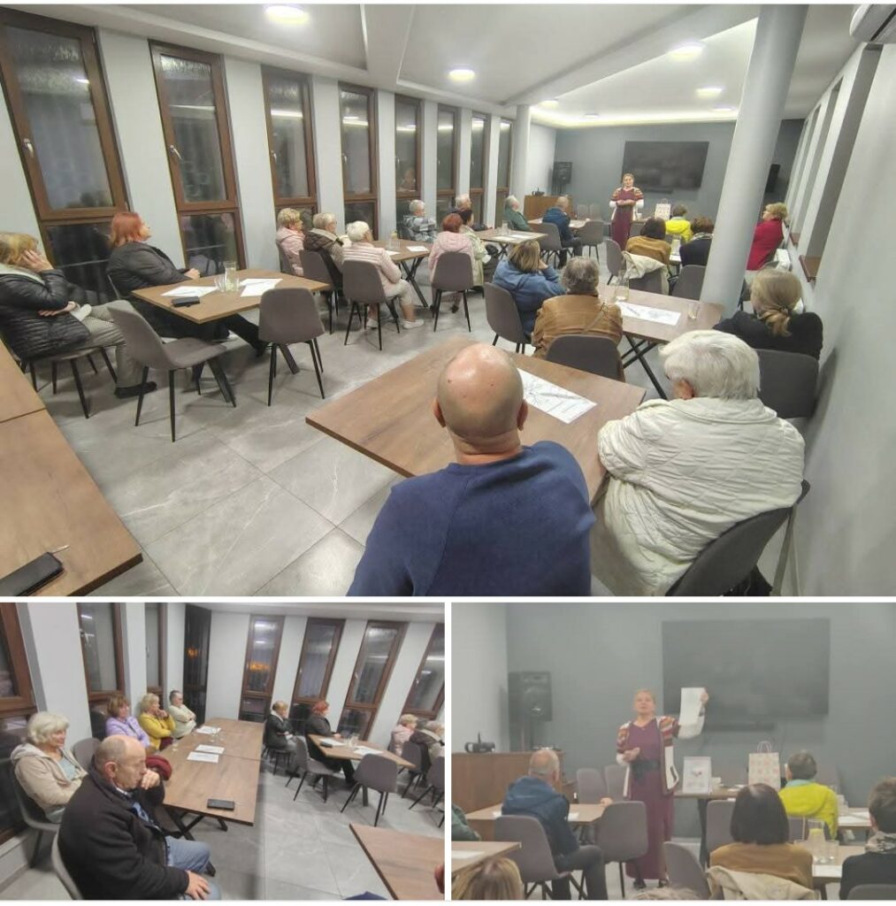 W ostatni poniedziałkowy wieczór września nasi seniorzy uczestniczyli w bezpłatnym spotkaniu z Panią psycholog Danutą Piegowską. Wszyscy słuchali z zaciekawieniem, robili notatki.